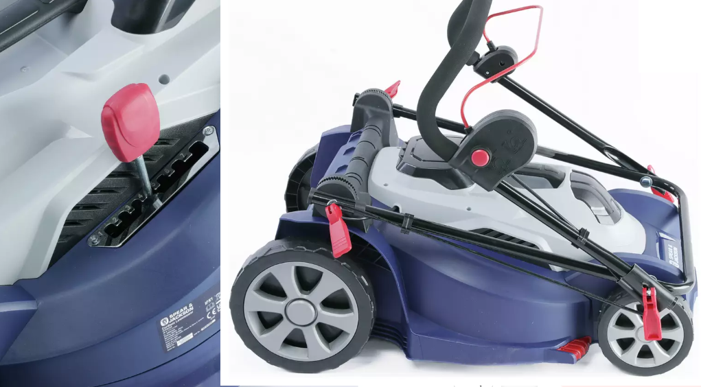 7 pjovimo aukščiai: Lengvai reguliuojamas aukštis nuo 2,5 cm iki 7,5 cm, tad susitvarkysite tiek su dekoratyvine žole, tiek su kiek apleista veja.