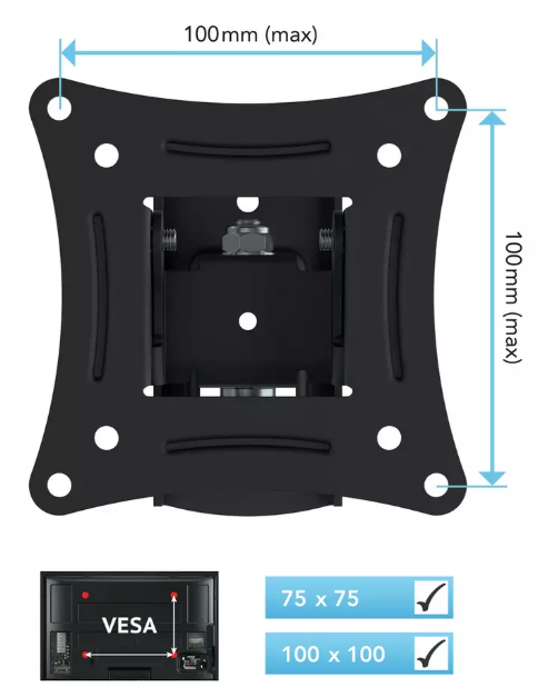 • VESA : 75 x 75 mm ir 100 x 100 mm (atstumas tarp skylių ekrano nugarėlėje).
