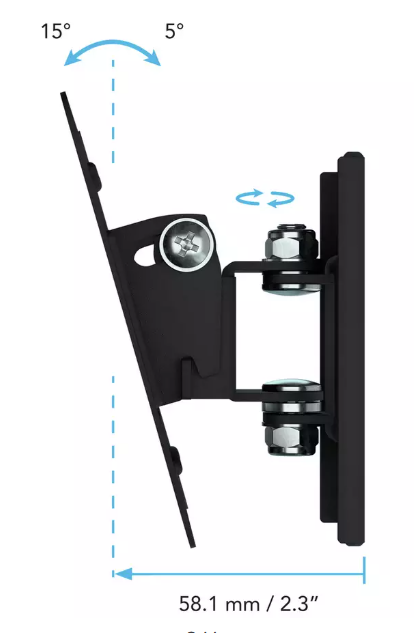 • Platus reguliavimas: Ekraną galite pasukti iki 90° kampu ir pakreipti (5° į viršų, 15° į apačią), kad matytumėte vaizdą puikiai iš bet kurios vietos.