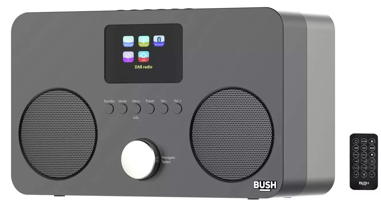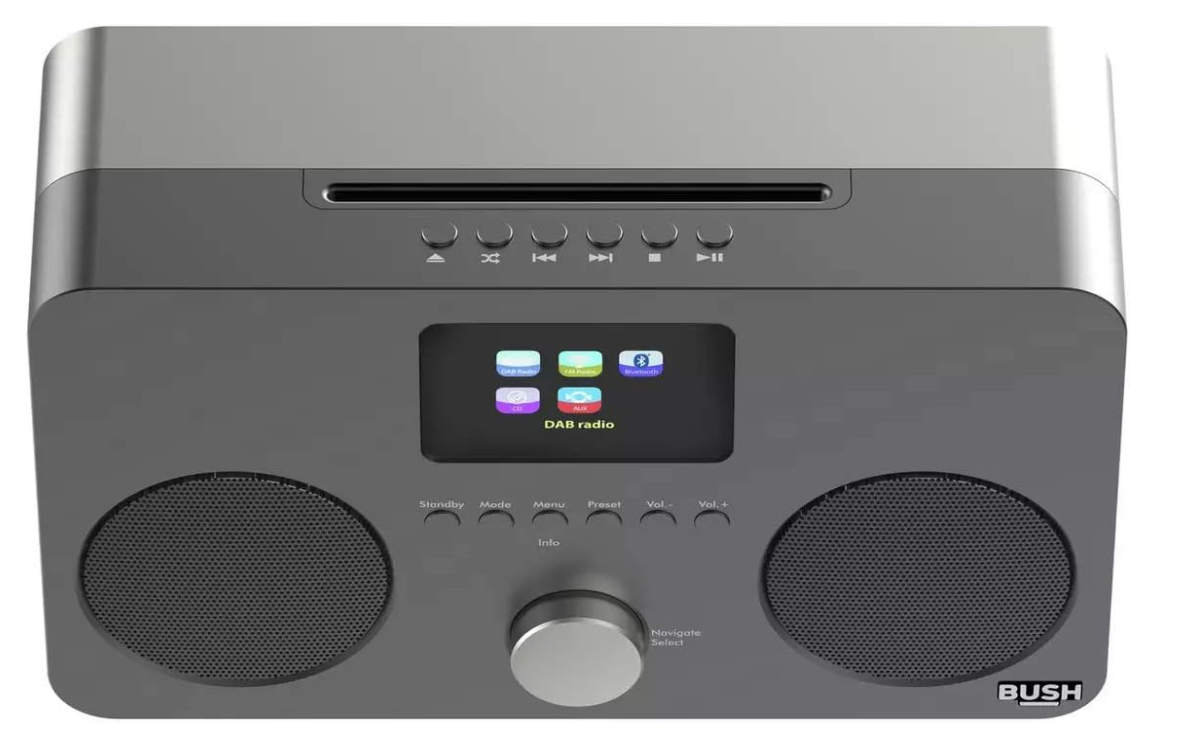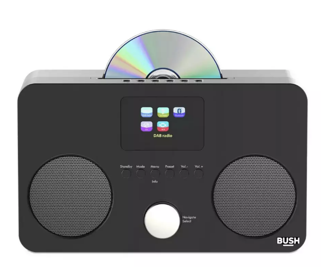 Muzikos grotuvas visoms jūsų laikmenoms. Ši stilinga „Bush“ sistema sujungia klasikinį CD grotuvą, skaitmeninį radiją ir modernų „Bluetooth“ ryšį į vieną kompaktišką įrenginį. Du atskiri stereo garsiakalbiai užtikrina švarų ir aiškų garsą, nesvarbu, ko klausotės.