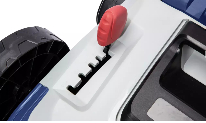 Kompaktiškas sandėliavimas: Sulankstoma rankena ir sudedama žolės dėžė leidžia įrenginį patogiai laikyti net ir nedideliame sandėliuke.