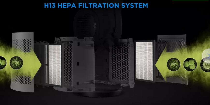 • H13 HEPA filtravimas: Aukščiausio lygio švara. Komplekte esantys 2 filtrai sulaiko iki 99,97% mikroskopinių dalelių. Tai idealus pasirinkimas alergiškiems žmonėms ar auginantiems naminius gyvūnus. Kvėpuosite oru be dulkių, žiedadulkių ir bakterijų.