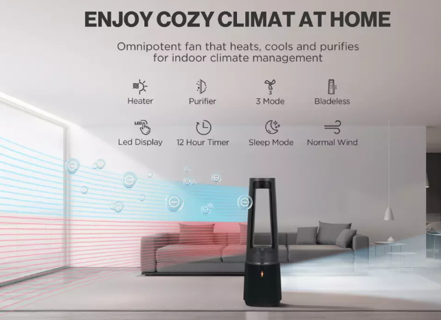 • Universalumas 3-in-1: Tai galingas 2000 W šildytuvas, 12 greičių ventiliatorius ir aukščiausios klasės oro valytuvas viename korpuse.