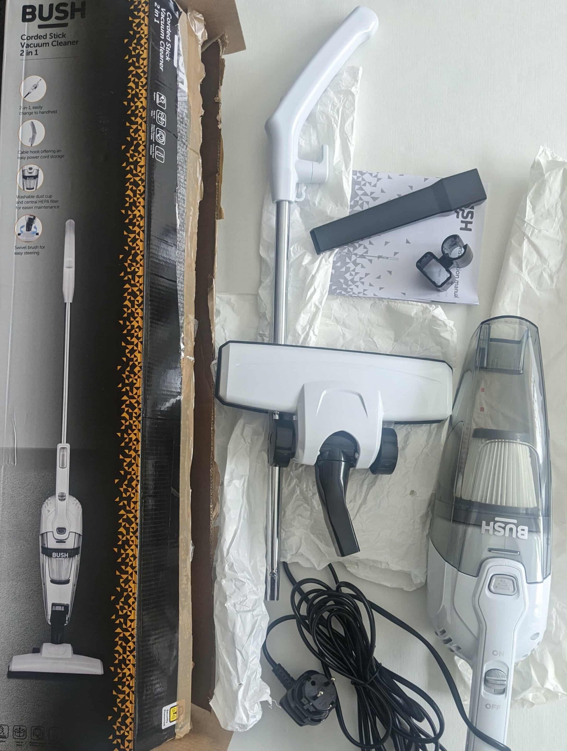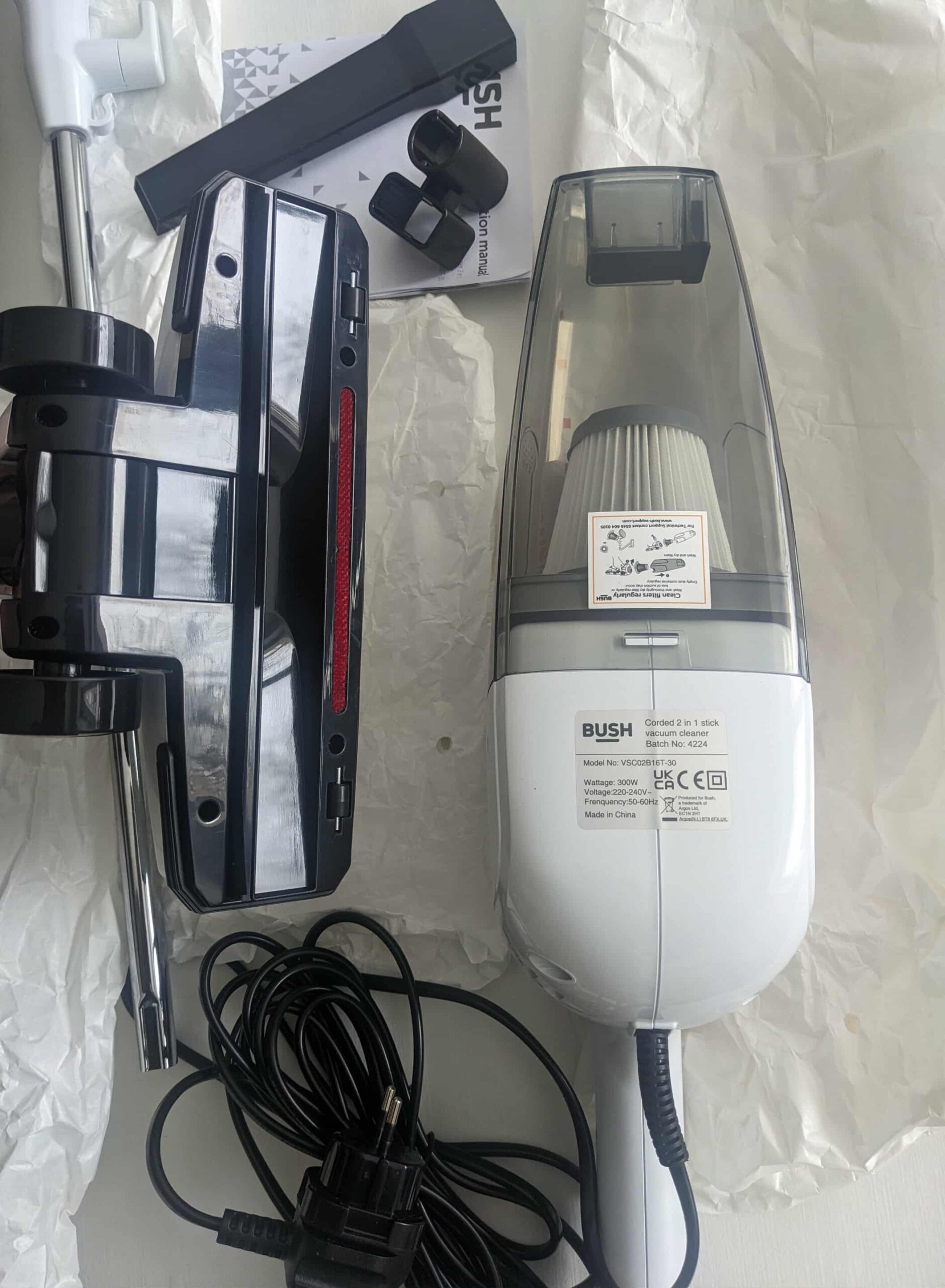Kas įeina į komplektą?Bush“ siurblys-transformatorius. Kombinuotas grindų antgalis (tinka visoms dangoms). Siauras antgalis (crevice tool) plyšiams ir sunkiai pasiekiamoms vietoms.