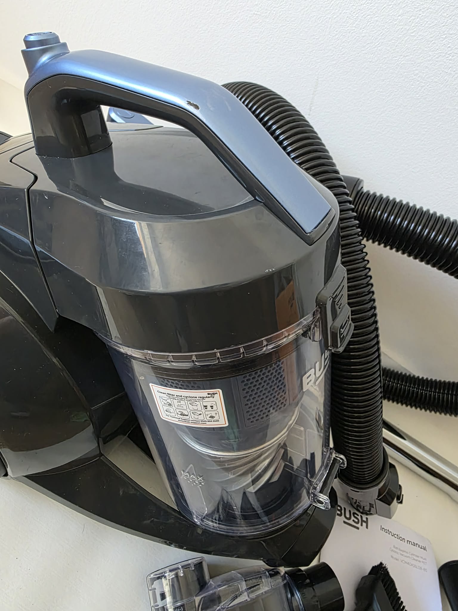 Šis „Bush“ siurblys naudoja „Multi Cyclone“ technologiją, kuri užtikrina nuolatinę ir stiprią siurbimo galią. Skirtingai nuo paprastų siurblių, šiame modelyje naudojama kelių ciklonų technologija, kuri sukuria stiprius oro sūkurius. Štai kodėl tai yra svarbu: