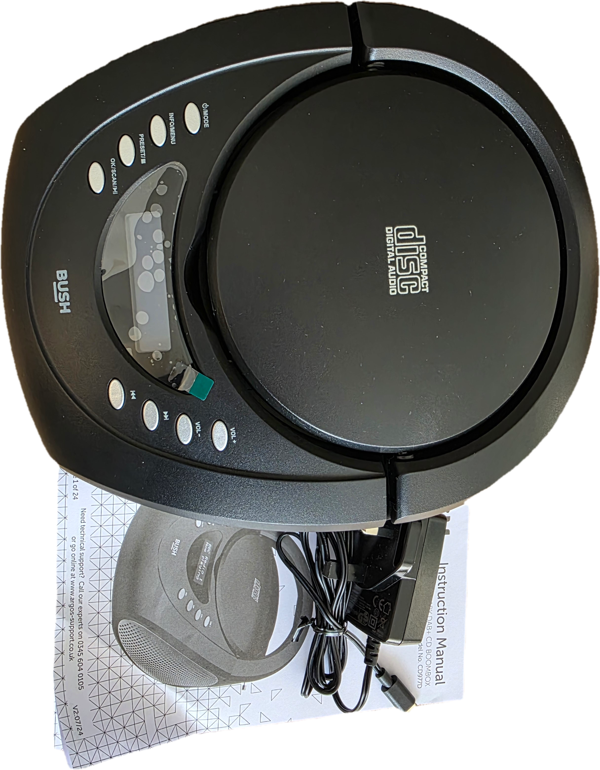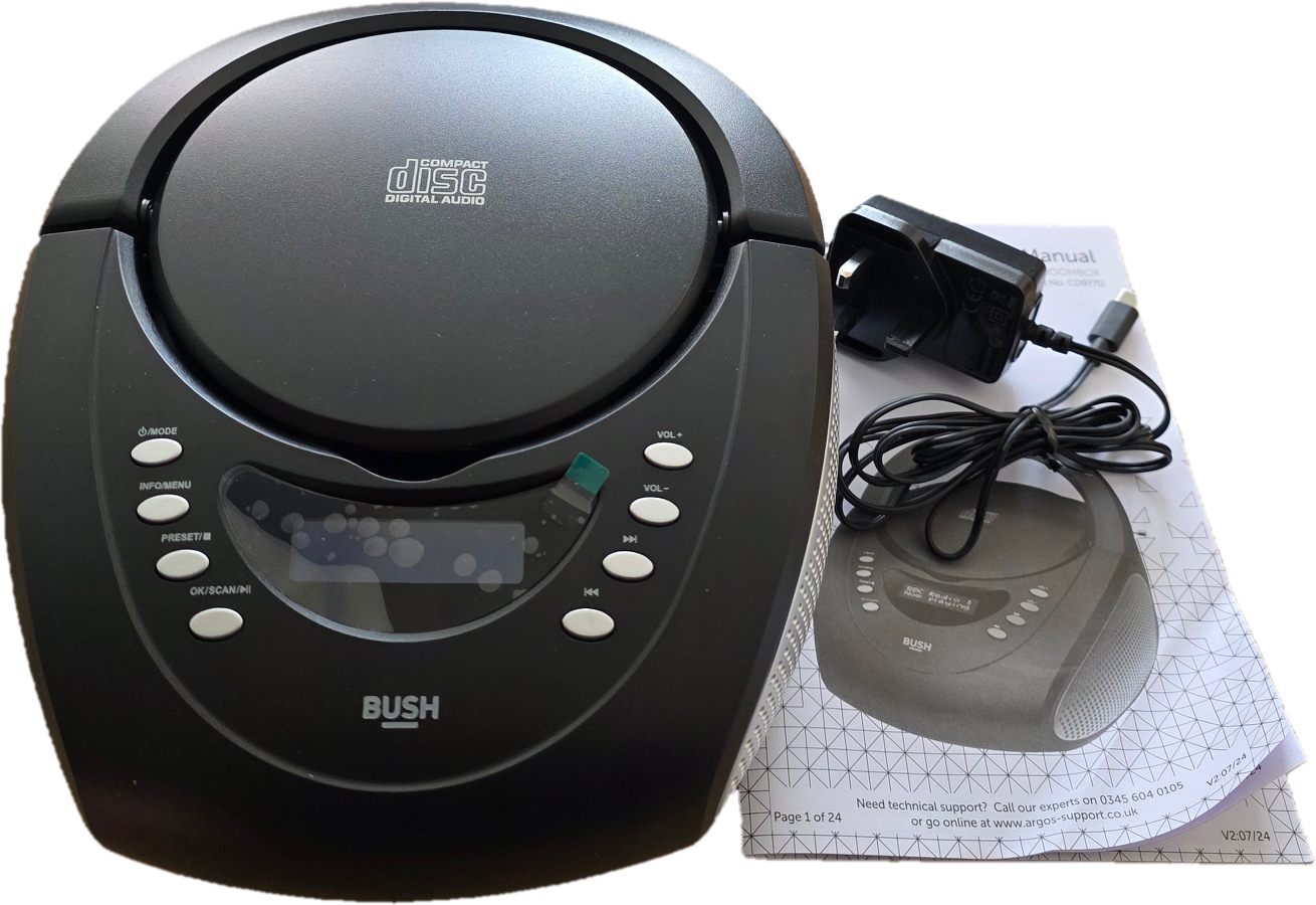 Radijas CD diskų grotuvas žadintuvas Bush Mini Boombox DAB+ FM mp3 nešiojamas