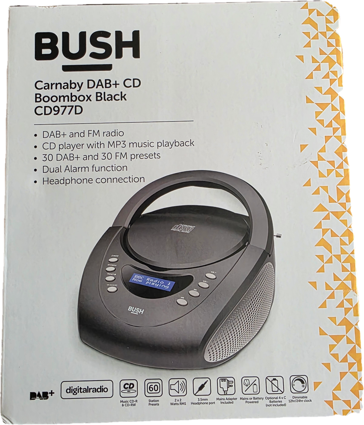 Stilius, nostalgija ir šiuolaikinės technologijos viename. „Bush Carnaby Mini“ yra kompaktiškas, nešiojamas muzikos centras, kuris puikiai tiks virtuvei, svetainei ar išvykoms į gamtą. Dėl savo „retro“ dizaino jis suteiks namams stilingumo, o skaitmeninės funkcijos užtikrins švarų garsą.