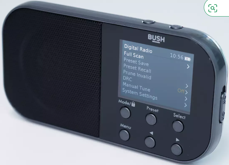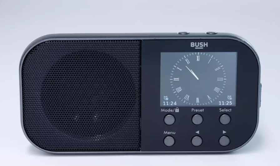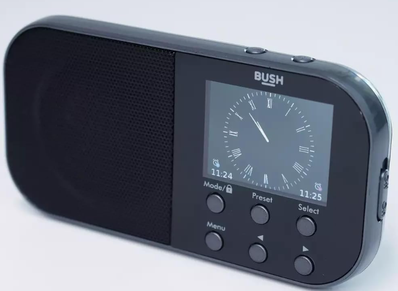 Radijas – žadintuvas pakraunamas nešiojamas kelioninis Bush FM DAB+