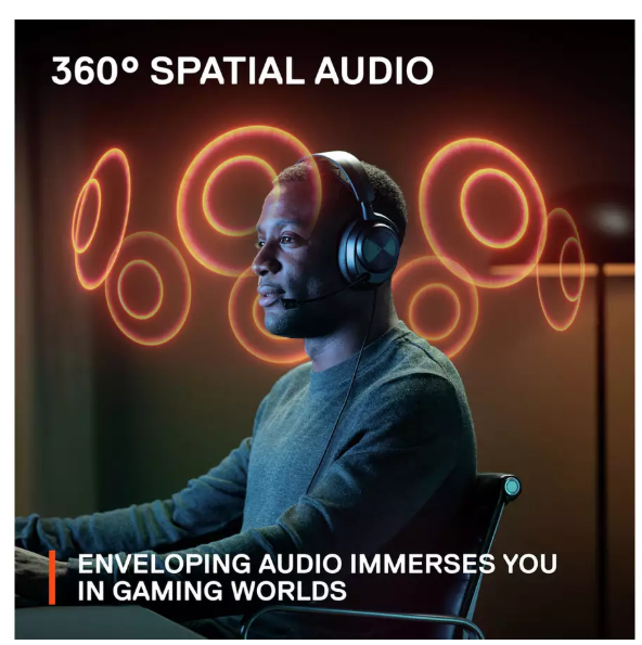 360° erdvinis garsas: Pilnas suderinamumas su PS5 „Tempest 3D Audio“ ir „SteelSeries Sonar“ programine įranga. Pasinerkite į žaidimą ir tiksliai žinokite, iš kur sklinda garsas.