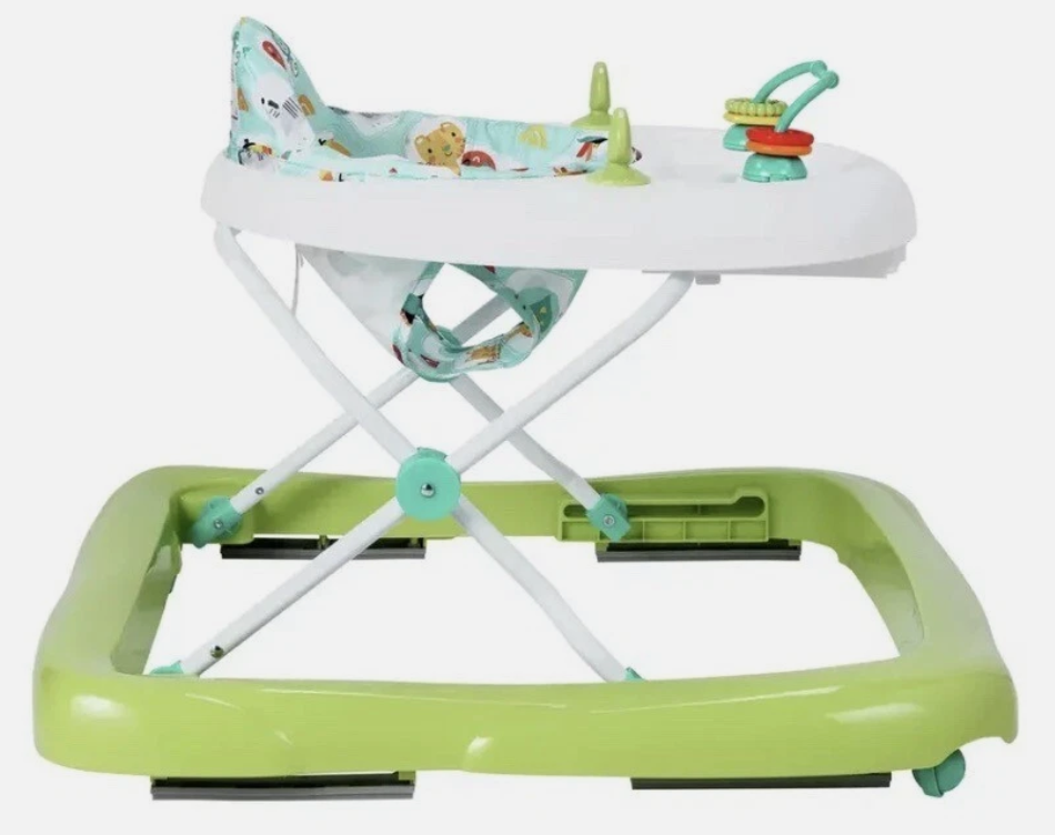 Saugumas: Platūs pagrindo rėmai užtikrina stabilumą, kad vaikštynė neapvirstų. Platūs ir stabilūs ratai užtikrina, kad vaikas judėtų sklandžiai, tačiau rėmas sukurtas taip, kad saugotų baldus nuo tiesioginių smūgių.