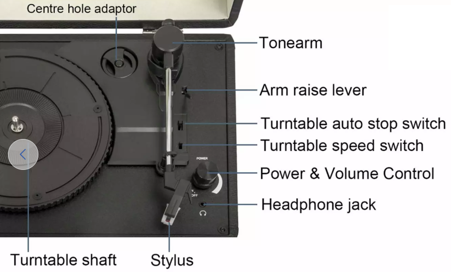 Universalus atkūrimas: Patefonas groja visų populiariausių dydžių plokšteles (nuo 7 iki 12 colių) ir palaiko tris greičius (33 1/3, 45 ir 78 RPM).